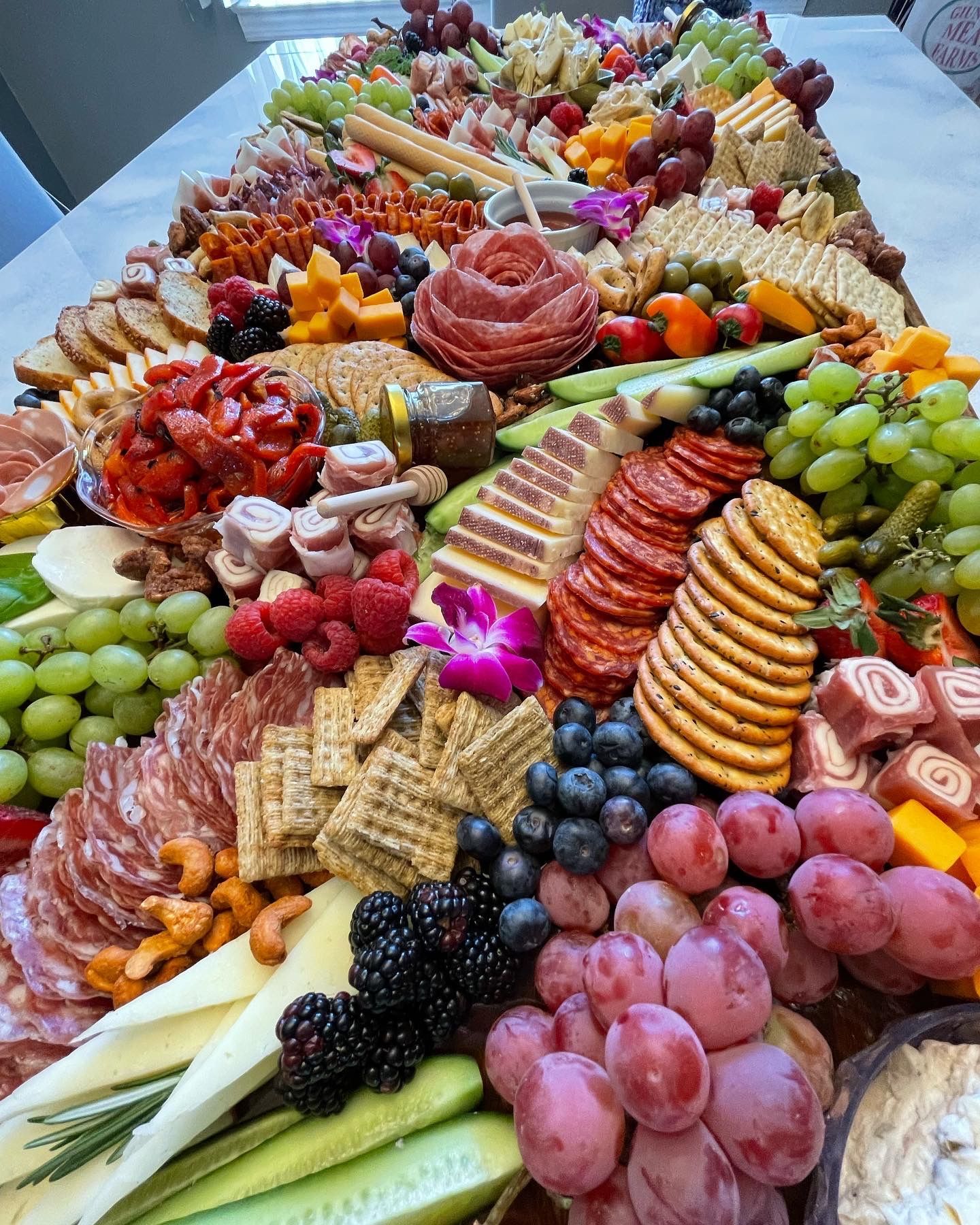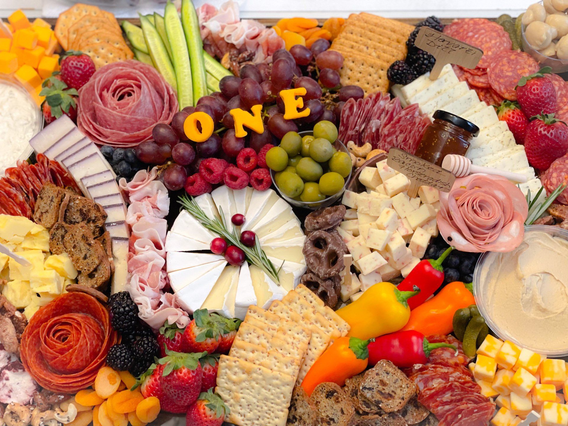 You may have seen Charcuterie Boards before but not like these! Here at Charcutebri we provide oversized charcuterie boards filled with a delicious assortment of high quality meats, cheeses, fruits, crackers and more to give your next event that WOW factor everyone will be talking about!